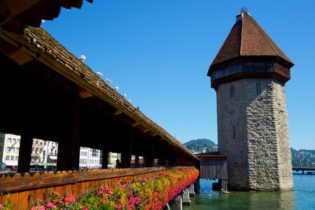 LUCERNE, SWITZERLAND - JUNE 27, 2016: Famous Chapel bridge in Lucerne in a beautiful summer day, Switzerland