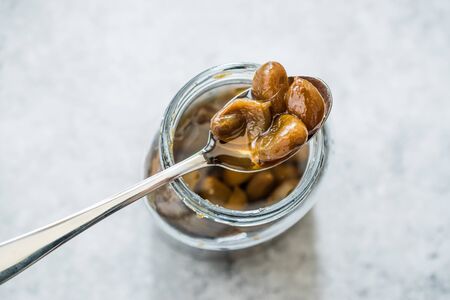 Edible Capers in Glass Bowl Ready to Eat. Organic Food.