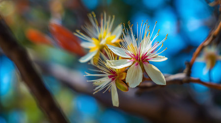 Stunning tropical flower in full bloom on a branch, nature's elegance