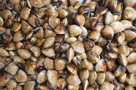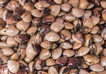 Closeup of a collection of seashells in sepia tone, perfect for natural textured backgrounds