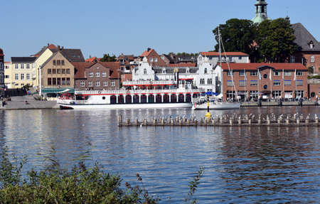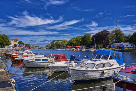 FLENSBURG, GERMANY - JULY 29, 2012: Vew of harbour in Flensburg, the independent town in the North of German state of Schleswig-Holstein. After Kiel and Lubeck it is the 3rd largest town in region