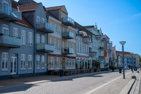 Flensburg, Germany - 18 February 2023: Old architecture in the streets of Flensburg on a sunny day