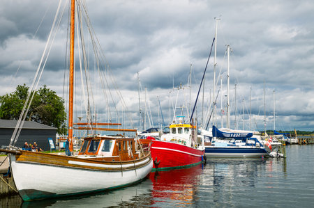 Maasholm, Germany - September 07, 2021: View of the harbor of Maasholm