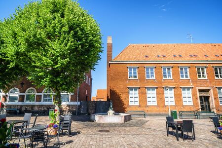 NEXØ, DENMARK - JUNE 30 - 2019: Fountain in the danish city of nexø on the island Bornholm in the summer