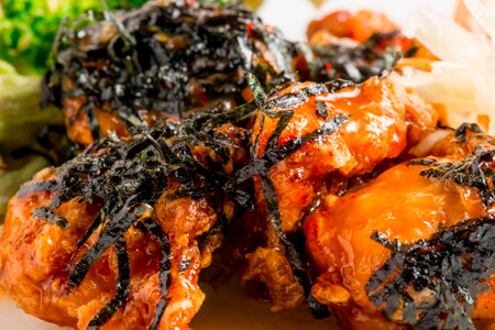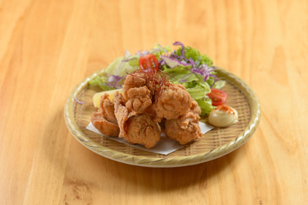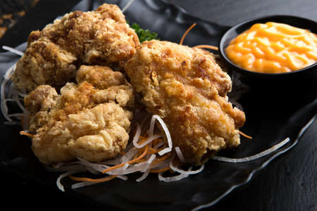 portrait of japanese food grilled chicken karage served with mayo sauce