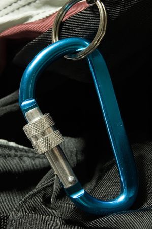 Climbing sports image of a carabiner on a rope