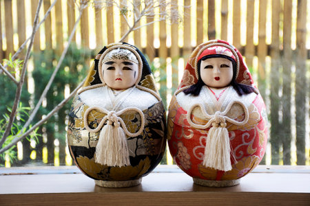 Japanese antique and ancient traditional dolls Dogo no hime and nishiki daruma for show and sale for thai people and foreign travelers travel visit buy in local souvenir gift shop in Bangkok, Thailand