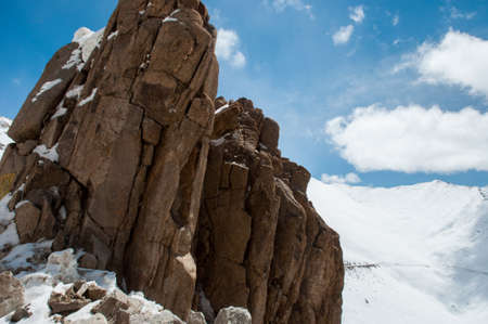 the cliff along a road in Leh, India