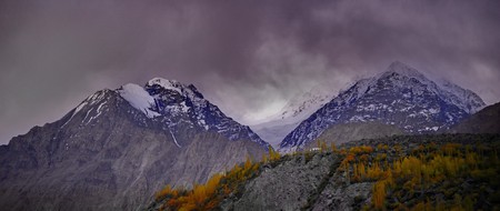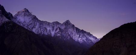 View of the end of the impressive Batura glacier in the Passu region in Karakorum, Northern Pakistan