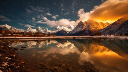 A starry night in mountainous, A starry night in a remote mountainous region Ai generated