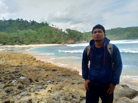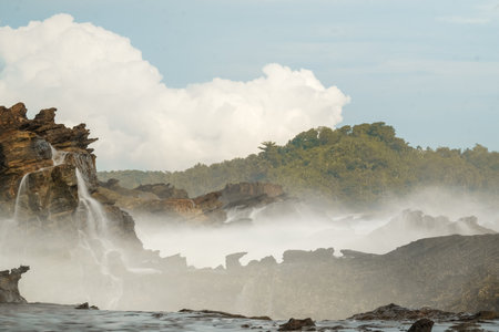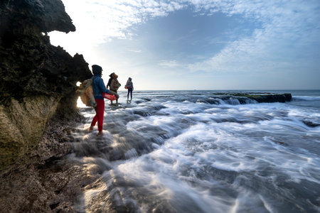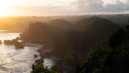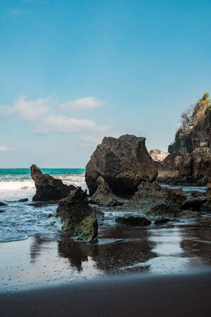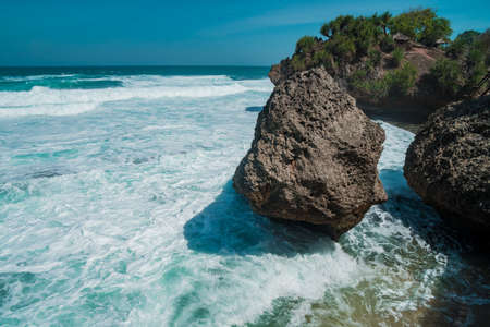 Amazing view of Yogyakarta seascape with natural coastal rock as foreground