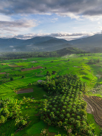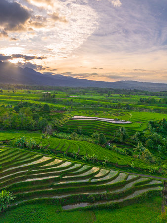 Beautiful morning view indonesia panorama landscape paddy fields with beauty color and sky natural light