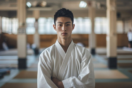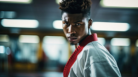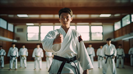 Karate fighter focused on -filled dojo., generative AI