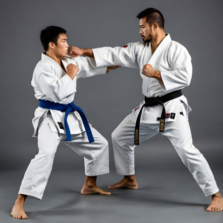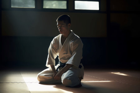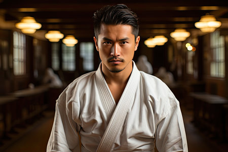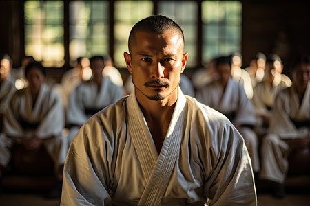 Martial arts focus in traditional dojo setting for karate training and discipline