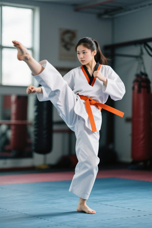 Asian woman karate martial arts. Taekwondo. Generative Ai