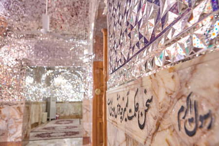 Yazd, Iran - April 22, 2017: The walls of the mirror mosque, decorated with quotes from the Koran.