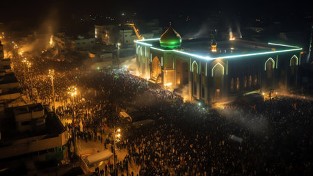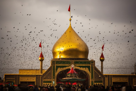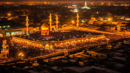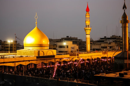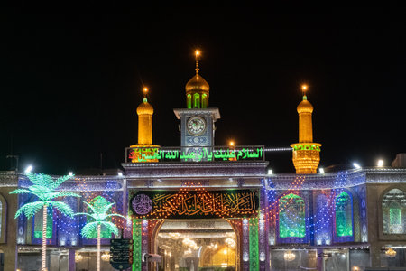 Karbala, iraq - February 04, 2023: photo of the holy shrine of imam Hussain in Karbala city