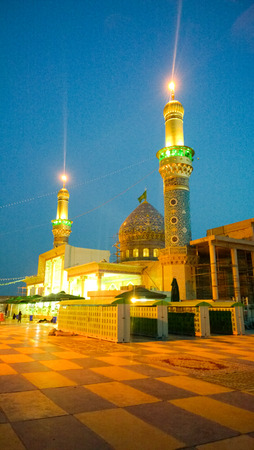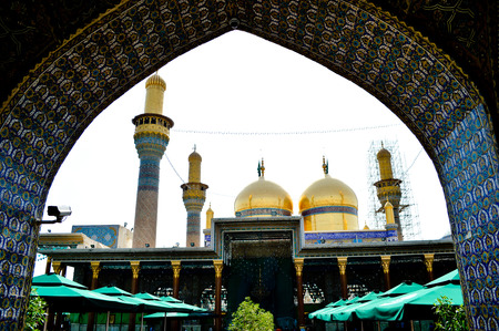 A picture of a Shi'ite shrine Musa al-Kadhim and his grandson Mohammed Jawad, It is a shrine of two gold domes and four minarets and a large courtyard, Located in the city of Kadhimiya in Baghdad.