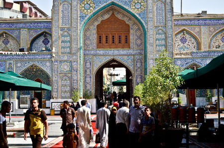 Karbala, Bagdad, Iraq, 06 09 2019: Imam Hossein's Shrine. The shrine of Prophet Abbas. Karbala and Tasoa. Walking in beinolharamein between Imam Hossein's Shrine and shrine of Prophet Abbas.