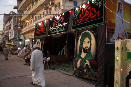 Picture of preparations processions Hosseinieh to receive pilgrims to shrines in Kadhimiya to memorize the martyrdom of Imam Musa al-Kazim.