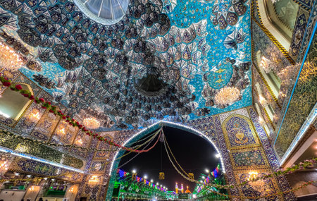 Internal shot of the shrine of Imam Ali al-Rida , It is the shrine of eighth imam to the Shiite sect and is located in the city of Mashhad. And contains a huge golden dome and a number of minarets aureus and the huge doors.