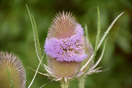 Dipsacus fullonum, wild thistle flower close up