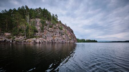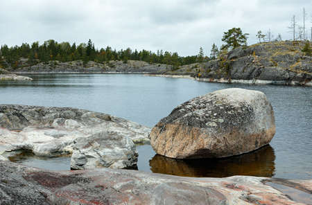 Rocky shore of the island on the lake . Ladoga Skerries, Karelia