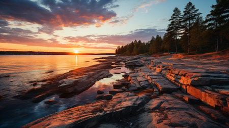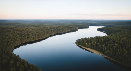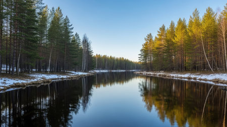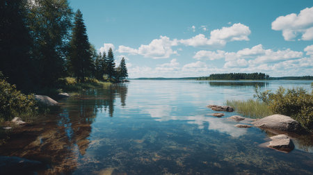 Forest reflections on the shores of quiet lakes, the tranquil beauty of the Nordic forests