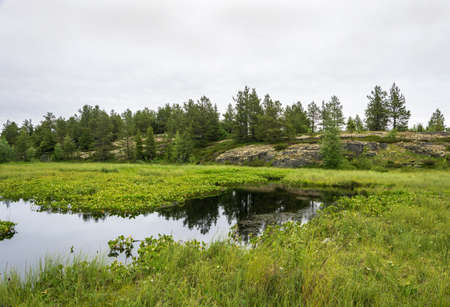 Corellia Russia. Ladoga lake. Landscapes of Corellia. Landscape of Lake Ladoga. Pond in the coniferous forest. Corellia in sunny weather. Lake in the taiga. Nature of Northern Russia.