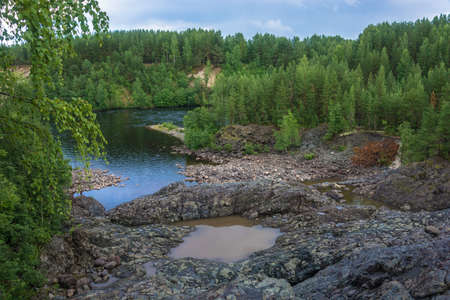 Chirko-Kem River. View from the coastal cliff. Karelia, Russia.
