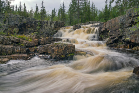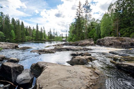 View of Ahvenkoski waterfall in the Republic of Karelia, Russia