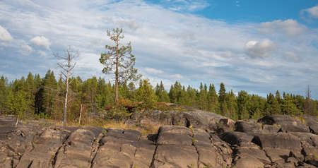 Landscape on ancient Girvas volcano crater in Karelia, Russia