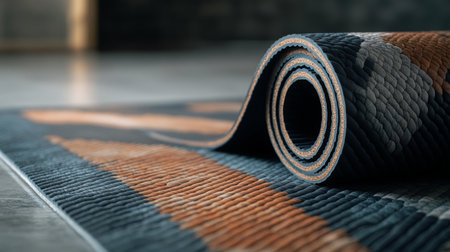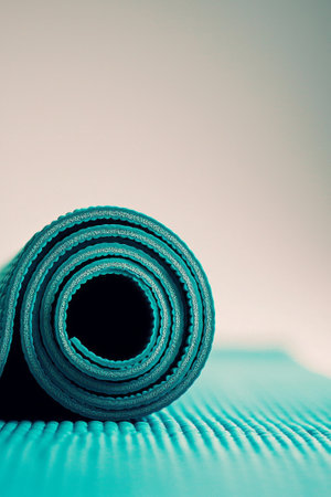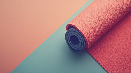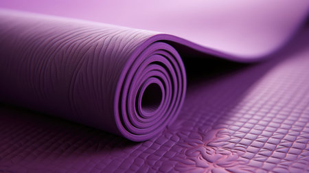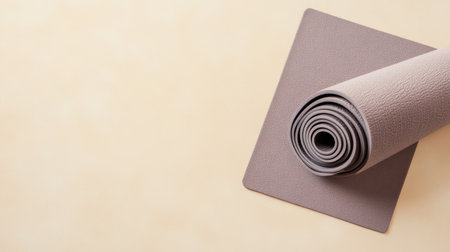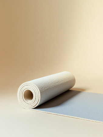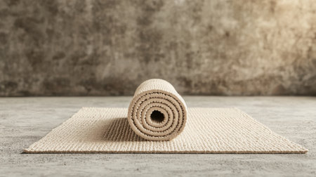 A serene image featuring a rolled soft yoga mat resting on a textured minimalist surface, perfect for enhancing fitness and wellness routines.