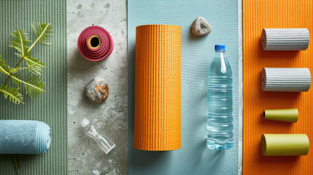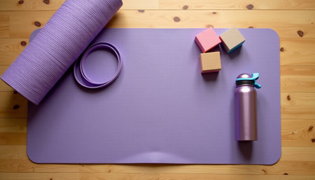 fitness yoga mat flat lay