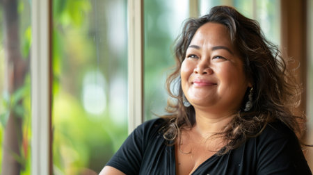 An Alaskan Native woman radiates warmth and confidence, her smile reflecting pride in her cultural background.
