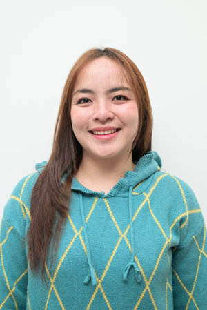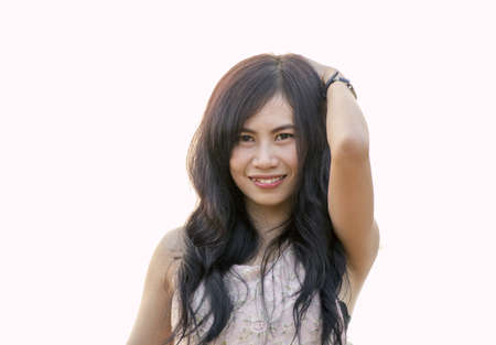 Casual asian girl on white background smiling face with relax tee shirt