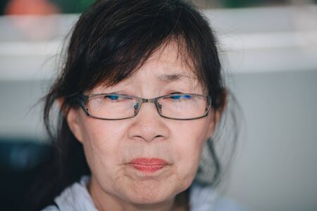Asian elder woman face portrait on white background