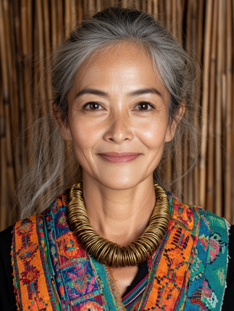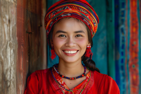 Portrait of a beautiful asian woman wearing ethnic clothes and smiling