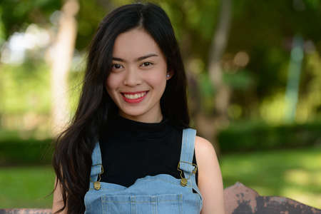 Portrait of thai teen beautiful girl happy and relax