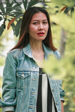 asia thai adult Women jeans denim relax and smile