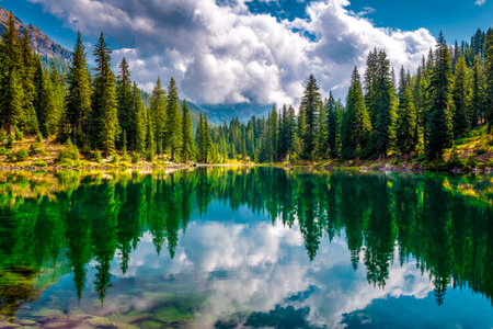 famous karerlake at the italian dolomites