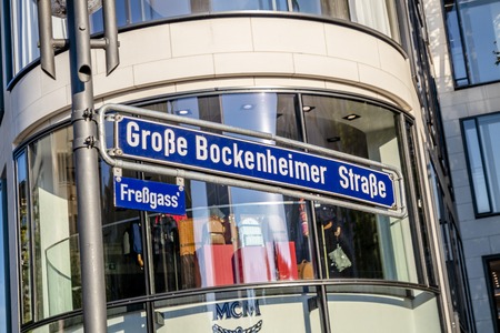 Frankfurt / Germany - AUgust 17 2018 : Sign explaining where the fressgass is