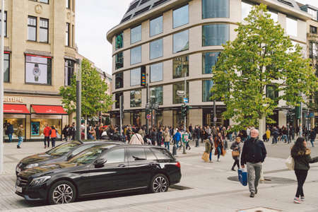 DUSSELDORF, GERMANY, AUGUST 10, 2018: People are passing through center of Dusseldorf, Germany