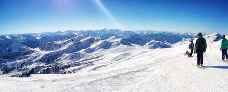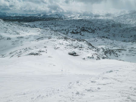 The mountain plateau of Dachstein-Krippenstein is the best place for snowshoers walks, skiing, snowboarding and other extreme winter sports, Salzkammergut, Austria.
