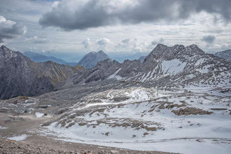 Mountain panorama from the viewing platform on the Zugspitze. German and Austrian ski areas.
