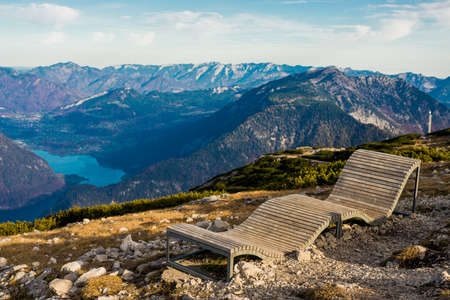 lonely bench in the alps mountain, a great place to relax in loneliness, nature landscape