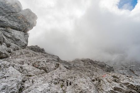 View of the Bavarian Alps. The mountain range is called Krawendel and is located near Mittenwald, Germany. Bad mountain weather outdoor concept.