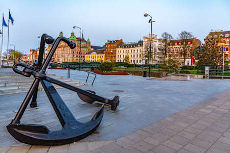 Sculpture of a big anchor on waterfront of Malmo, Sweden