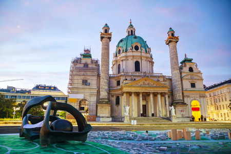 Karlskirche or saint Charles church exterior at sunrise in Vienna, Austria