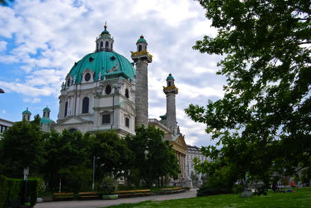 Vienna, Austria - September 16, 2019: The Church of St. Charles Borromeo. On the Karlsplatz square